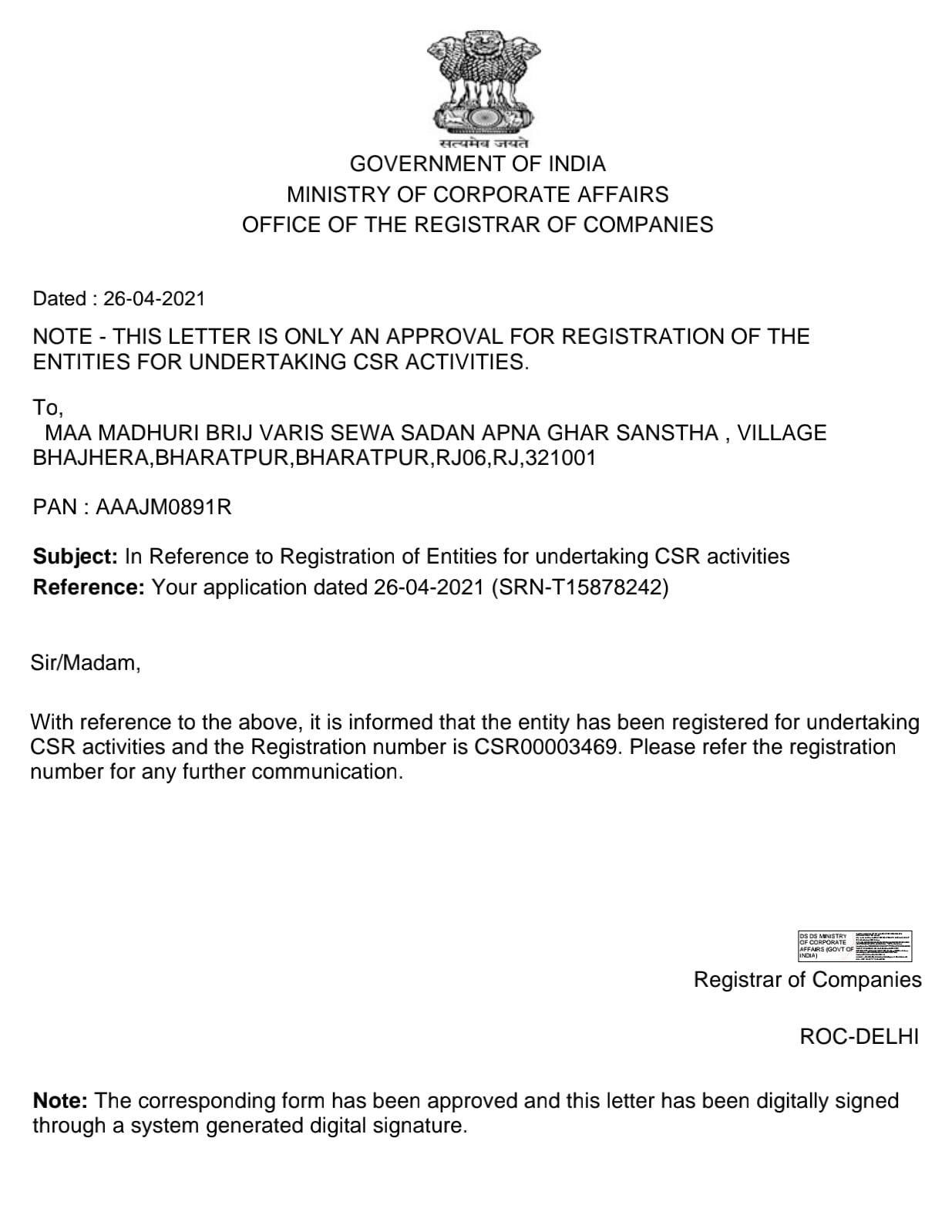 FCRA & CSR Certificate
